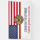 Cette conception comprend un arrière - plan américain, qui est idéal pour la retraite d'un pompier. "Félicitations" et l'insigne d'un pompier se trouve au-dessus du nom du pompier, lieutenant ou chef qui est diplômé ou qui prend sa retraite. Fêtez dans le style !