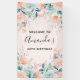 Bannière d'anniversaire avec une élégante bordure florale. Fleurs et feuilles en rose et vert.