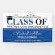 Banderole de faire-part amusante avec vos félicitations au diplômé dans une combinaison de couleurs chic et amusante de noir, blanc et bleu