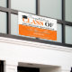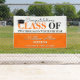 Sympathique panneau de jardin avec vos félicitations au diplômé dans une combinaison de couleurs chic et amusante de noir, blanc et orange