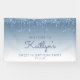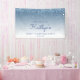 Bienvenue aux invités avec cette bannière de fête d'anniversaire girly, glamour Sweet sixteen, avec une bordure brillante bleue fausse parties scintillant et bleu ombre arrière - plan. Personnalisez-le avec son nom en écriture manuscrite bleu foncé, avec l'occasion et la date ci-dessous en police sans serif.