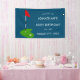 Illustration simple d'un drapeau rouge de golf, d'une balle verte et d'une balle de golf sur un arrière - plan bleu foncé sur cette bannière du 50e anniversaire. Customisez la bannière avec le nom de votre ami, de votre mari, de votre collègue de travail, de votre partenaire, etc. et la date de fête d'anniversaire afin que vos invités sachent où aller.