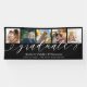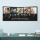 Bannière élégante et très belle personnalisée pour afficher et célébrer votre diplômé extraordinaire. Cette bannière de remise de diplômes comporte un collage de 5 photos sur la grille pour afficher vos propres photos et souvenirs d'études supérieures. "gradué" conçu dans un style de script blanc écrit à la main. Customisez avec le nom du diplômé, l'année et l'école.