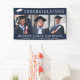 Élégante fête de remise de diplômes bleu foncé bienvenue bannière et fond photo pour célébrer le diplômé avec "Félicitations" en grande typographie blanche, une illustration d'une casquette de remise de diplômes, un collage de trois photos et son nom, l'année de classe et le nom de l'école dans la typographie blanche moderne. Les couleurs arrière - plan et texte peuvent être modifiées pour correspondre aux couleurs de votre école en sélectionnant "customiser plus loin".