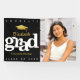 Annoncez au monde que votre groupe favori a atteint son jalon avec cette étonnante bannière photo simple, moderne, personnalisée. Une arrière - plan noire est superposée par une typographie grasse, graphique, blanche et une icône de casquette de feuille d'or. Sur la droite, ajoutez une photo de votre choix. Personnalisez le texte personnalisé avec le nom de votre diplômé, le nom de la mascotte ou de l’école, et l’année de cours. Vous aurez le choix entre des options à l'intérieur ou à l'extérieur. Invitations correspondants, cartes de remerciements, toppers casquettes, ventilateurs, serviettes, assiettes et autres goodies de graduation sont également disponibles dans cette collection tendance et élégante. Garanti de préserver les souvenirs de leur occasion spéciale ! Il suffit de remplacer l’échantillon de photo par un de vos propres, de taper le nom, la mascotte ou le nom de l’école et l’année de classe de votre élève, et vous pouvez facilement customiser cette bannière de remise de diplômes. S'il vous plaît, envoyez-moi un message avec toute question ou demande.