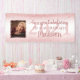 Félicitez votre diplômée qui aime étinceler avec une bannière rose en or et en parties scintillant rose fillette dorée personnalisée avec sa photo et son nom avec éclat ajouté et votre message personnalisé (l'exemple dit FÉLICITATIONS À NOTRE DIPLÔMÉ avec une année de retard modifiable. CONSEIL PHOTO : Pour obtenir les meilleurs résultats, choisissez une photo avec le sujet au milieu et/ou pré-rognez-la dans une forme similaire à celle montrée AVANT de télécharger. Contactez le concepteur via Zazzle Conversation ou makeitaboutyoustore@gmail.com si vous souhaitez modifier ce design sur un autre produit ou si vous souhaitez coordonner des éléments.