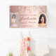 Une bannière pour une fête de fin d'études 20xx pour deux diplômés. Un faux or rose, arrière - plan rose avec étoiles qui s'égoutte. Personnalisez et ajoutez vos propres 2 photos du diplômé. Texte ; Félicitations. Le texte : Graduate, et les noms sont écrits avec un script de style manuscrit moderne.