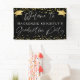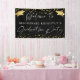Bienvenue à la fête de remise des diplômes de votre diplômé avec cette bannière d'accueil moderne et minimaliste en noir, or et blanc. Conçu avec une typographie manuscrite moderne, des confettis de parties scintillant d'or et des capuchons de graduation de feuille d'or métallique ou des planches de mortier et personnalisé avec le nom de votre diplômé. CHANGEMENT DE COULEUR : La couleur noire de l'arrière - plan peut être changée en une couleur d'école, une couleur de thème de fête ou une couleur préférée en cliquant sur PERSONNALISER PLUS en bas de la section PERSONNALISER. ASSISTANCE : Pour obtenir de l'aide sur la modification/personnalisation de la conception, le changement de couleur ou le transfert de la conception à un autre produit, contactez le concepteur AVANT DE COMMANDER via l'onglet MESSAGE Conversation Zazzle ou envoyez un courriel à makeitaboutyoustore@gmail.com.
