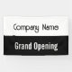 Une bannière permet à tout le monde de savoir que vous êtes ouvert aux affaires. Le texte blanc en bas dit "Grand Ouverture". Le texte blanc est sur une bande noire. Une bande blanche en haut a du texte noir. Vous pouvez le modifier pour afficher votre nom d'entreprise ou un message personnalisé.