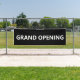 Cette grande bannière d'ouverture est noire. Cette bannière d'entreprise extérieure a du texte blanc en casquette. Une bannière extérieure est un moyen simple et abordable de commercialiser l'ouverture de votre nouvelle entreprise. Vous pouvez modifier le message sur la bannière si vous le souhaitez.