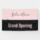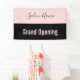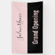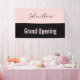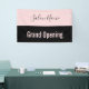 Une bannière permet à chacun de savoir que votre salon de beauté est ouvert pour les affaires. Le texte rose pâle en bas dit "Grand Ouverture". Le texte rose est sur une bande noire. Une bande rose au sommet a un élégant script noir pour le nom du salon de beauté.