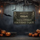 arrière - plan de nuit éffrayant sans lune, recouvert d'un demi-crâne, s'est évanoui à la fête d'anniversaire d'Halloween. Design original par Holiday Hearts Designs (tous droits réservés).