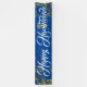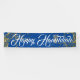 Cette bannière de vacances est présentée dans le style extérieur. Choisissez à l'intérieur ou à l'extérieur, avec ou sans grommets. Montré en bleu avec le texte blanc "Happy Hanoukka" dans un script sophistiqué avec deux tourbillons d'étoiles à l'aspect or à chaque extrémité. Customisez ou achetez comme prévu.
