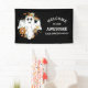 Banderole d'Halloween avec l'illustration d'un fantôme souriant. Décoré de fleurs, arcs-en-ciel et chauves-souris.