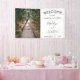 Accueillez les invités mariages à votre cérémonie ou réception avec une élégante bannière photo personnalisée. Les images et tout le texte sont simples à personnaliser. (CONSEIL EN MATIÈRE DE PLACEMENT D'IMAGE : Une façon simple de centrer une image exactement comme vous voulez est de la rogner avant de la télécharger sur le site Zazzle.) Le design moderne minimaliste noir et blanc comprend une photo de votre choix, une calligraphie de script de style manuscrit chic, une typographie vintage inspirée de l'art déco, et un message personnalisable qui dit "bienvenue à notre bonheur toujours après". Ce panneau d'accueil mariage est une façon élégante de partager des photos de fiançailles tout en ajoutant une touche personnalisée à vos décorations de fête du jour. Félicitations à la mariée et au marié !