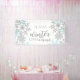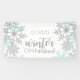 Bannière de premier anniversaire Winter Onederland avec des flocons de neige en parties scintillant bleue et argent.