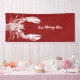 Ajoutez votre propre message pour créer des approvisionnements personnalisés pour votre événement spécial. Cette bannière présente l'illustration d'un homard blanc contre un arrière - plan rouge foncé. Il est prêt à être personnalisé avec votre propre texte en écriture blanche ou cursive.