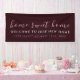Bienvenue invités à votre soirée de ménage avec élégance élégante. Cette élégante bannière "Home Sweet Home" de la fête de la maison comporte un message élégant "Welcome to Our New Home", l'adresse de la rue et la date établie dans l'écriture moderne. Un design simple dans une palette de couleurs bordeaux moderne aux accents gris gratuits. Personnalisez avec votre message personnalisé ou votre nom de famille, adresse ou date d'établissement, ou utilisez le bouton "contacter ce concepteur" pour obtenir de l'aide. Le message "Home Sweet Home" est un design multicouche, affiché en écriture manuscrite gris clair avec des ombres de couleur vin, donnant une profondeur de perspective à la conception. Le message personnalisé "Bienvenue à notre nouvelle maison", l'adresse de rue et la date établie sont présentés dans la typographie gratuite. Créez votre propre bannière de soirée personnalisée en utilisant les champs fournis. Vous pouvez customiser plus loin en sélectionnant "personnaliser" et en accédant à la section calques pour visualiser les images et modifier la couleur arrière - plan ou d'autres éléments de conception selon votre goût, ou en utilisant le bouton "contacter le concepteur" pour obtenir de l'aide. Une façon parfaite d'accueillir les invités dans votre nouvelle maison et votre soirée de ménage moderne et élégant.