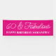 Créez votre propre bannière de 2 1/2 x 8 pieds pour sa quarante et fabuleuse célébration du 60e anniversaire ou toute autre célébration spéciale. Customisez la couleur arrière - plan fuchsia et rose chaud. Vous pouvez customiser les styles et le libellé de police pour créer votre propre bannière d'anniversaire pour elle. Les fontes disposent d'une calligraphie monoline moderne "60 & Fabulous" jumelée à un tout casquette branché audacieux "HEUREUX ANNIVERSAIRE SON NOM! '