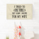 "J'ai essayé de prendre ma retraite, mais maintenant je travaille pour ma femme" est une retraite originale et amusante avec un design avec des caractères typographiques impressionnants. C'est une excellente idée cadeau pour votre beau père, maman, grand-mère, grand-père et tous les grands-parents retraités! la meilleure illustration géniale pour votre fête de retraite! Si vous aimez cette oeuvre d'art, découvrez d'autres créations similaires dans omitay store. Merci pour le soutien à un artiste local.