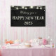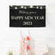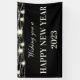 Cette bannière de Bonne Année vous souhaite la bienvenue comporte des lampes à cordes et des jarres sur un arrière - plan noir. Personnalisez-le avec l'année.