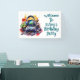 Une bannière d'accueil personnalisée pour l'anniversaire du garçon à thème Jeux et pizza fête. Casques de jeu vidéo bleu et vert, contrôleurs, tablette et tranches de pizza dans un style d'illustration aquarelle ai. Bon pour les jeunes garçons, pré-ados ou fête d'anniversaire adolescent pour votre petit joueur!