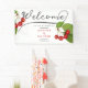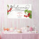 Célébrez votre journée spéciale avec cette bannière moderne de fête d'accueil en noir et blanc. Avec sa calligraphie noire et son illustration vintage de jolies cerises rouges aux feuilles verts sur un élégant arrière - plan blanc, ce design minimaliste ajoute une touche romantique à votre décor mariage. Personnalisez ce panneau mariage avec les noms de la mariée et du marié dans la typographie rouge cerise classique et la date de l'événement en noir élégant. Explorez la collection complète de MARIAGES CHERRY pour mettre en correspondance les produits et les variations de couleurs, créant un look sophistiqué et cohésif pour votre célébration. Parfait pour les mariages d'été chic, les douches nuptiales et les occasions festives en plein air, cette bannière apporte une touche moderne et intemporelle à votre événement. Faites de votre mariage un inoubliable avec ce design élégant et personnalisable !