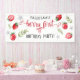 Banderole de 1er anniversaire de belle fille, avec aquarelle illustration de fraises rouges juteuses, verdure et fleurs blanches. L'élégante police de script de calligraphie dit : "(ADD NAME) fête d'anniversaire de la baie !" Parfait pour les fêtes d'été dans le jardin, les pique-niques et les bbqs.