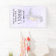 Bannière de baby shower avec une jolie illustration représentant un dinosaure gris violet.