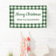 Bienvenue aux invités à votre fête de Noël avec une bannière personnalisée avec une bordure de buffle vert et blanc rustique avec votre texte dans un rectangle blanc au centre. Il dit "Joyeux Noël" dans une police de caractères vert foncé avec votre nom en dessous dans une police sans serif moderne. Parfait pour un séjour de vacances. Customisez-le avec votre texte dans la barre latérale. Pour voir le Motif de design Green et White En vichy sur la coordination des approvisionnements de fête, cliquez sur le lien de collection "Rocklawn Arts". numériquement créé une image. Copyright ©Claire E. Skinner. Tous droits réservés.