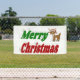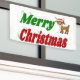 Bannière avec Joyeux Noël en texte vert et rouge 3D et un renne. Disponible en plusieurs tailles pour intérieur et extérieur.