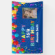 Joyeux 16e anniversaire Ballons colorés Confetti Bannière photo bleue. Pour plus de personnalisation, cliquez sur le bouton "Customiser" et utilisez notre outil de conception pour modifier ce modèle.