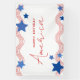 Célébrez l'anniversaire de l'Amérique avec ce jardin-barbecue amusant et patriotique 4 juillet avec des rayures rouges festives et des étoiles bleues sur un arrière - plan couleur ivoire.