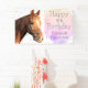 Une adorable bannière d'anniversaire avec un joli cheval sur un arrière - plan à motifs. Ajoutez à la décoration d'anniversaire une bannière qui attire l'oeil de tous au centre de la fête. L'âge et le nom peuvent être personnalisés.
