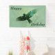 Cette bannière en tissu a une photo modifiée d'un corbeau noir transparent volant contre des toits d'arbres décolorés sur un arrière - plan vert. Customisez le texte de Joyeux Anniversaire avec les modèles.