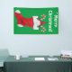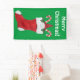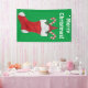 Cette banderole en tissu est verte avec un mignon gnome barbu au sommet d'un bas rouge et blanc de Noël entouré de sucres de canne et de groupes de feuilles saints aux baies rouges. Customisez le texte Joyeux Noël avec le modèle.