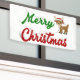 Bannière avec Joyeux Noël en texte vert et rouge 3D et un renne. Disponible en plusieurs tailles pour intérieur et extérieur.