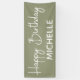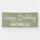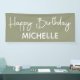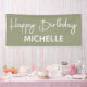 Basique simple sauge vert et blanc "Joyeux anniversaire" bannière de la fête customisée avec le nom de l'invité d'honneur dans une police de script fantaisiste.