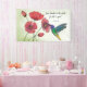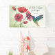 Un colibri se nourrit d'une fleur de cosmos rouge. Cette aquarelle offre joie et paix en faisant savoir à quelqu'un que vous pensez d'eux et en remerciant Dieu pour eux.