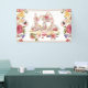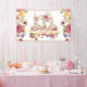 Lapins adorables de région boisée de Pâques d'aquarelle de bannière de caractéristique heureuse florale de signe entourés par les fleurs et la bannière de "Joyeuses Pâques".
