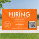 Attirez de nouvelles recrues avec facilité avec cette orange moderne entièrement personnalisable MAINTENANT Embaucher à temps plein et à temps partiel positions bannière extérieure. Mettez simplement à jour votre logo d'entreprise, votre code qr de site Web et les coordonnées de l'entreprise.