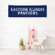 Ce design présente le logo officiel du mot-symbole des Panthers de l'Eastern Illinois University (EIU). Le texte "EASTERN ILLINOIS" est affiché en gras, sans serif, sur la rangée supérieure, suivi de "PANTHERS" dans un style similaire sur la rangée inférieure. Les deux lignes de texte sont rendues dans un bleu profond et solide, une couleur associée à l'université, contre un arrière - plan blanc et propre. L'utilisation de toutes les lettres majuscules et d'une police forte donne un sentiment de puissance et de force institutionnelle. Ce logo est utilisé sur différentes plateformes pour représenter les Panthers de l'Est de l'Illinois, en particulier leurs équipes sportives. Montrez votre fierté EIU avec ce logo classique !