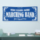 Banderole de défilé de Marching Band pour l'école ou l'organisation avec un tourbillon décoratif amusant et la bordure d'étoiles en blanc. Modifiez le texte pour le nom et la ville. Modifiez l'arrière - plan bleu en n'importe quelle couleur.