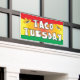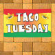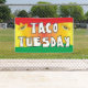 Bannière du Mardi Taco pour restaurant mexicain ou spécial soirée taco. Attention aux couleurs vives peut être vu de loin. Arrière - plan rouge, vert et jaune avec des illustrations sombrero et une police de caractères à la mode coupée à la main.