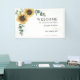 Bannière de mariage de script Feuille Sunflower Eucalyptus avec un agencement moderne sur arrière - plan blanc. Réutiliser facilement cette fonction pour d'autres événements spéciaux