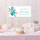 Bannière de Bienvenue Personnalisée Mariage Bohème Fleur Bleu Aqua et Vert Émeraude Aquarelle