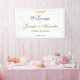 Bannière élégante et élégante de réception de mariage blanc, noir et or avec un script élégant dans le style classique de calligraphie traditionnelle, avec les noms de mariée et mariée et date mariage. Idéal pour des fêtes de mariage chic et élégantes. Veuillez noter que l'effet or est imprimé, ce n'est pas de la vraie feuille d'or. L'arrière - plan blanc est modifiable après avoir appuyé sur le bouton PERSONNALISER. Vous pouvez également modifier la couleur du texte et les polices.