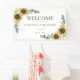 Bannière de bienvenue du Mariage de script Sunflower Eucalyptus. Ce modèle mignon avec un beau bouquet fleuri rustique et une typographie simple et moderne peut être facilement customisé pour votre jour de mariage. Ajoutez une date et les noms du couple en cliquant sur le bouton "Personnaliser". CONSEIL : Les correspondances sauvegardent la date, l'invitation, les cartes de remerciement et autres cadeaux de mariage, faveurs, signes, et d'autres mariages gardiens et goodies sont disponibles dans la collection ci-dessous.