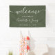 Cette chic carte de bannière de bienvenue mariage en signature vert olive peut être personnalisée avec vos noms et date spéciale. Conçu par Thisisnotme©