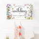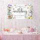 Bannière de mariage thème Fleur des champs adorable - le design présente une variété de fleurs des champs aquarelles colorées et de petites abeilles adorables. Le modèle comprend la phrase mignonne 'Bienvenue au mariage de - AJOUTER LES NOMS' avec une combinaison de calligraphie et de polices serif. Parfait pour les célébrations d'été et de printemps !